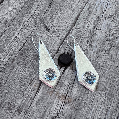 Silver Inverted Kite Earrings with Southwestern Cupped Flower