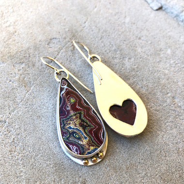 Corvettite/Fordite Dangle Earrings with 18k Gold